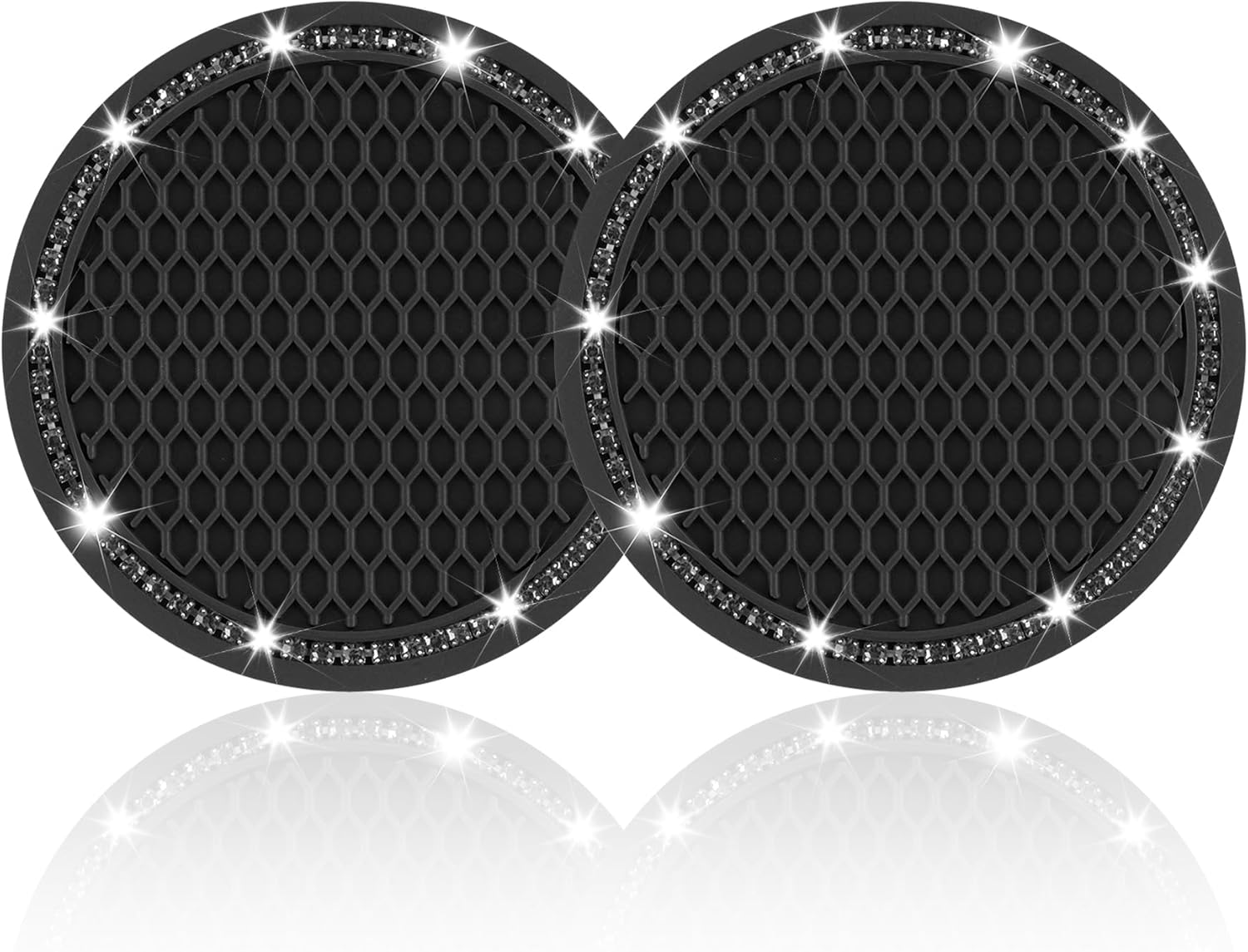 • JUSTTOP 2 Pack Universal Auto Anti Slip Cup Holder Insert Coaster, Car Cup Holder Coaster, Bling Crystal Rhinestone Car Interior Accessories, Black – Grey