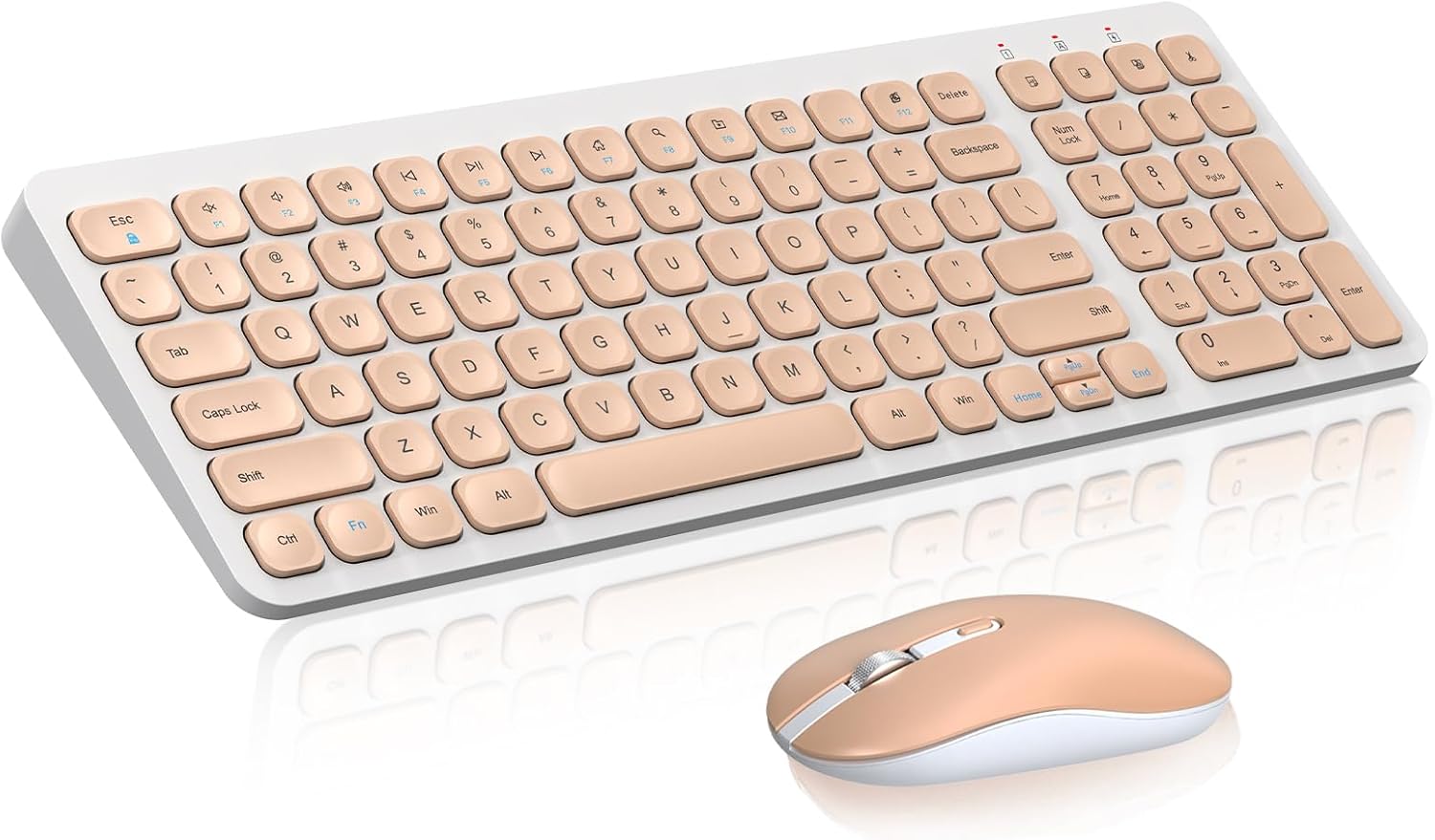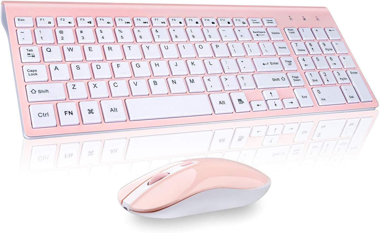 • cimetech Wireless Keyboard and Mouse Combo, Compact Full Size Wireless Keyboard and Mouse Set 2.4G Ultra-Thin Sleek Design for Windows, Computer, Desktop, PC, Notebook, Laptop – Pink