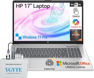 • HP 17 Inch Touchscreen Laptop Computer, 17.3″ HD+ Touch Screen Business Laptop, AMD Ryzen 5 (6-Cores), 64GB RAM 2TB SSD, Windows 11 Pro Lifetime Office, 10-Key Number Pad