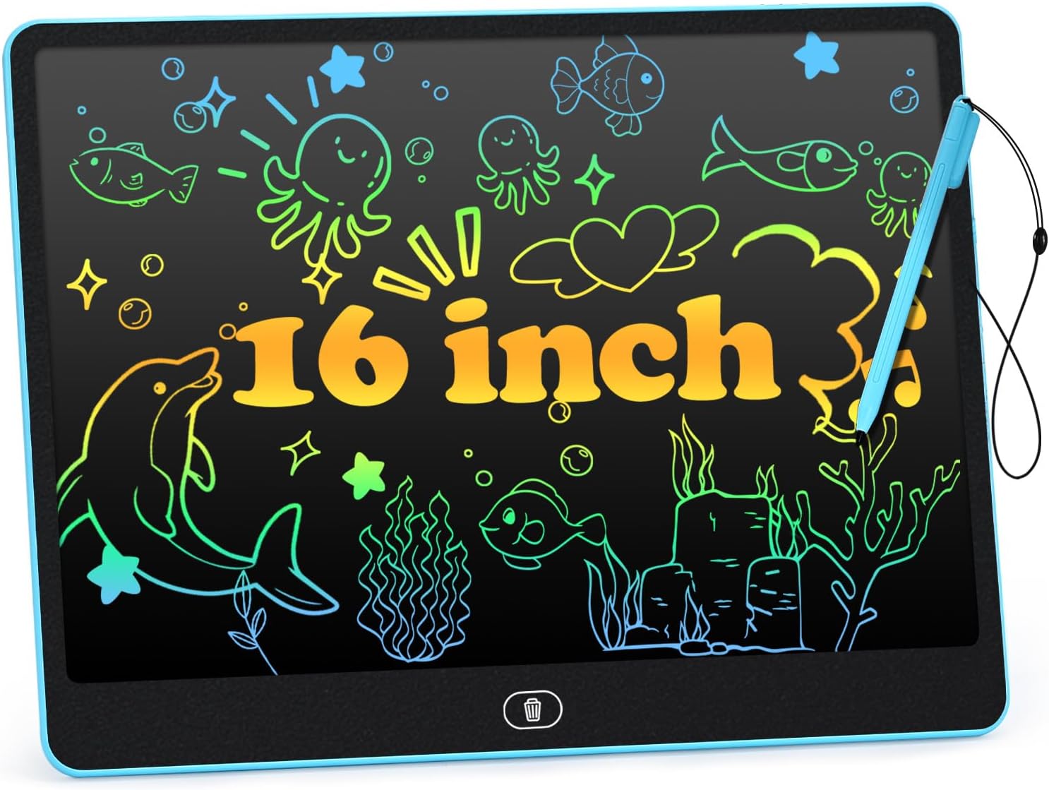 • cimetech LCD Writing Tablet for Kids, 16 Inch Doodle Board Drawing Sketch Pad, Toddler Travel Essential, No Mess Coloring Books, Road Trip Activities Airplane Toys, Birthday Boy Girl Gifts Blue
