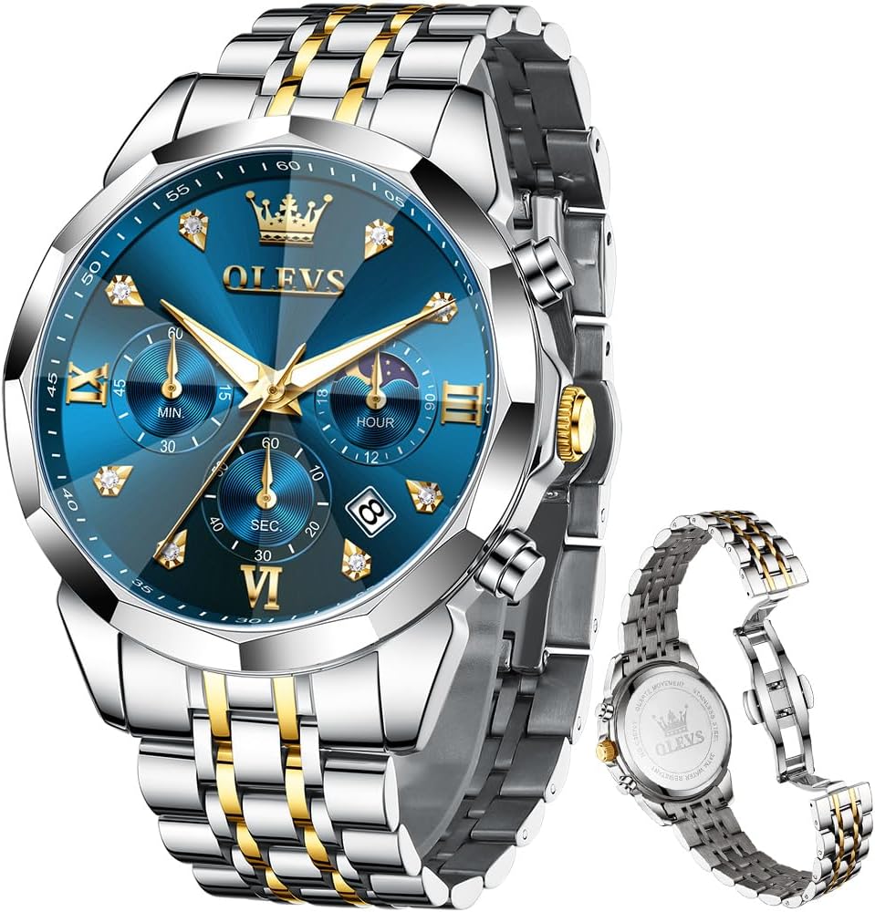• OLEVS Watches for Men Luxury Diamond Casual Large Dial Watches Stainless Steel Waterproof Business Dress Analog Luminous Date Mens Watches