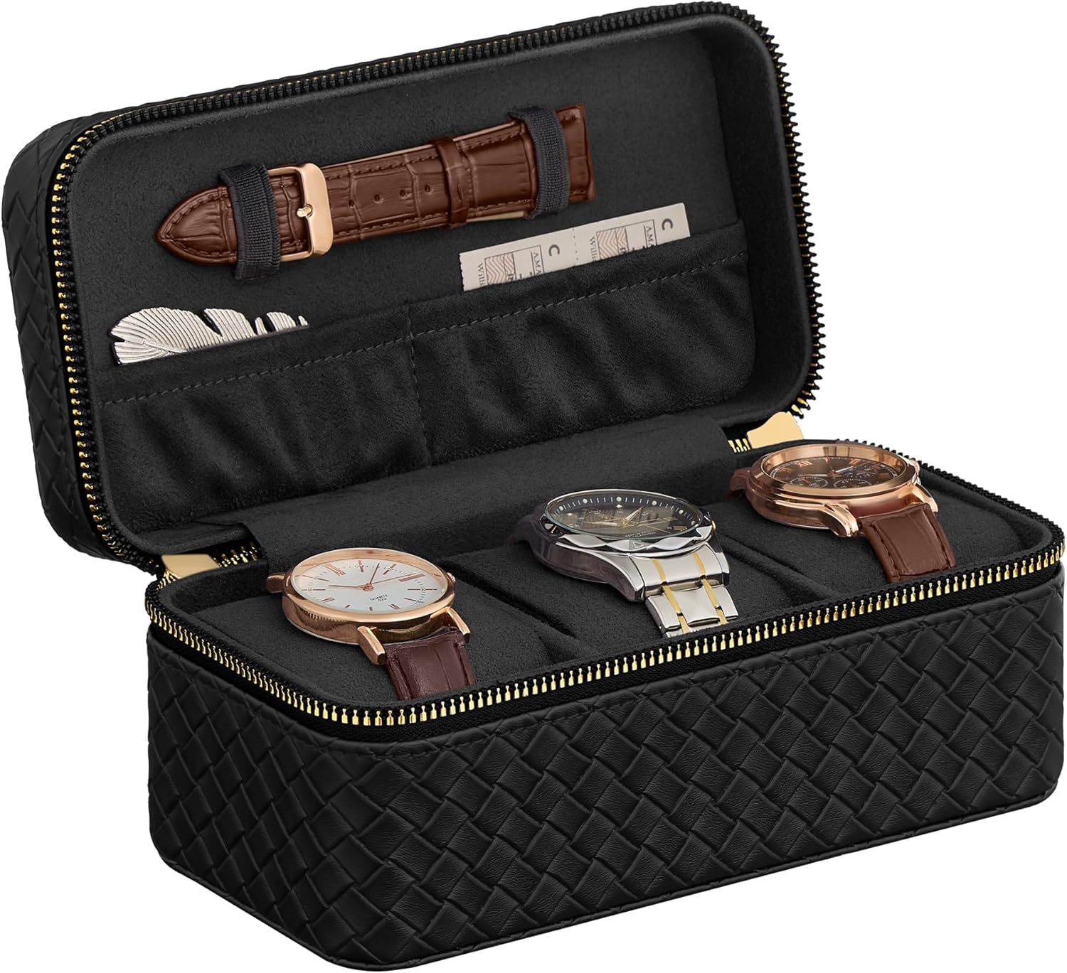• ROTHWELL 2 Watch Travel Case Storage Organizer for 2 Watches | Tough Portable Protection w/Zipper Fits All Wristwatches & Smart Watches Up to 50mm