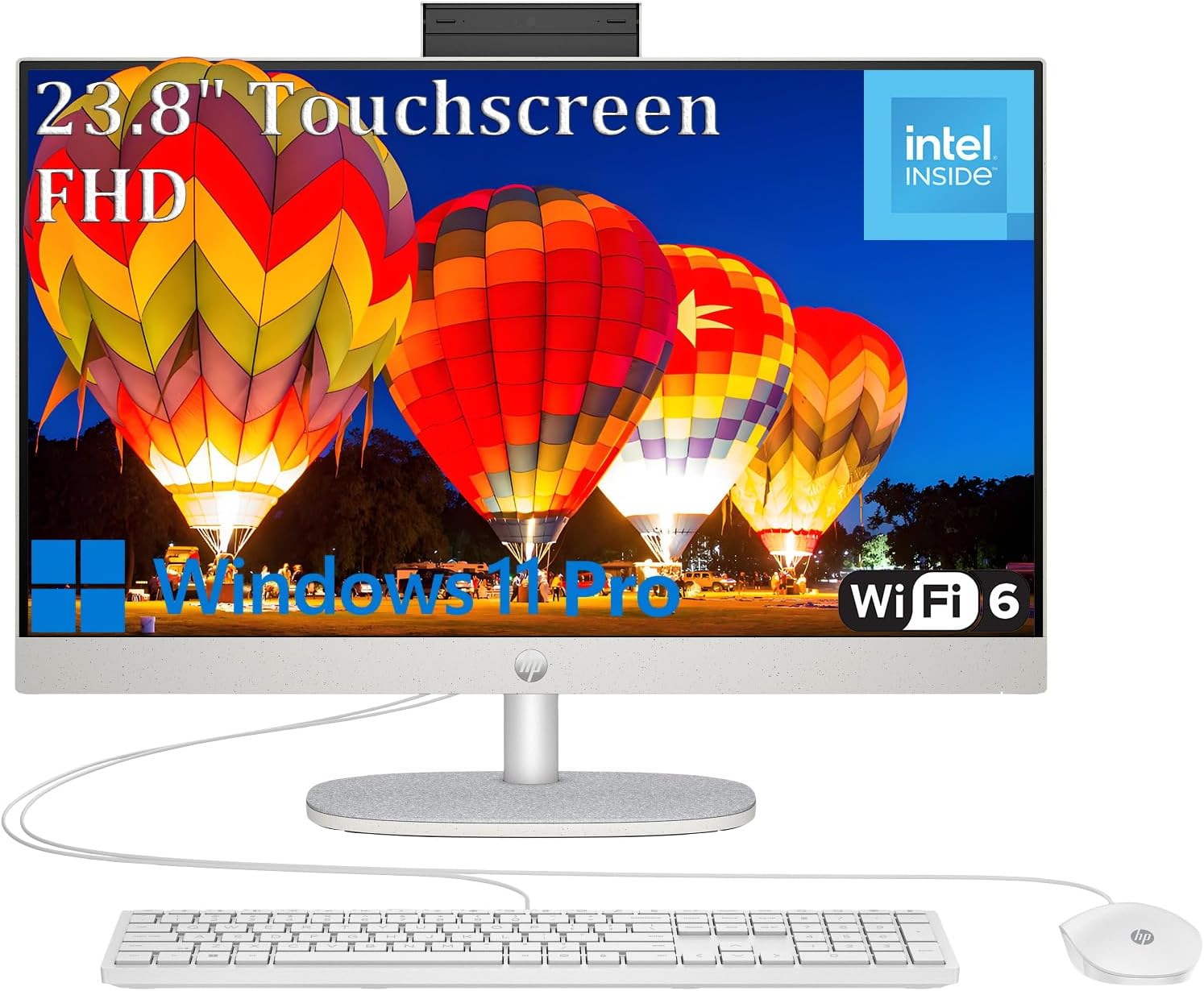 • HP 24 Touchscreen All-in-One Desktop Computer, Intel Processor (Beat i3-1110G4), 32GB DDR4 RAM, 1TB PCIe SSD, 23.8″ FHD AIO for Home and Business, WiFi 6, Bluetooth 5.3, Webcam, HDMI, Windows 11 Pro